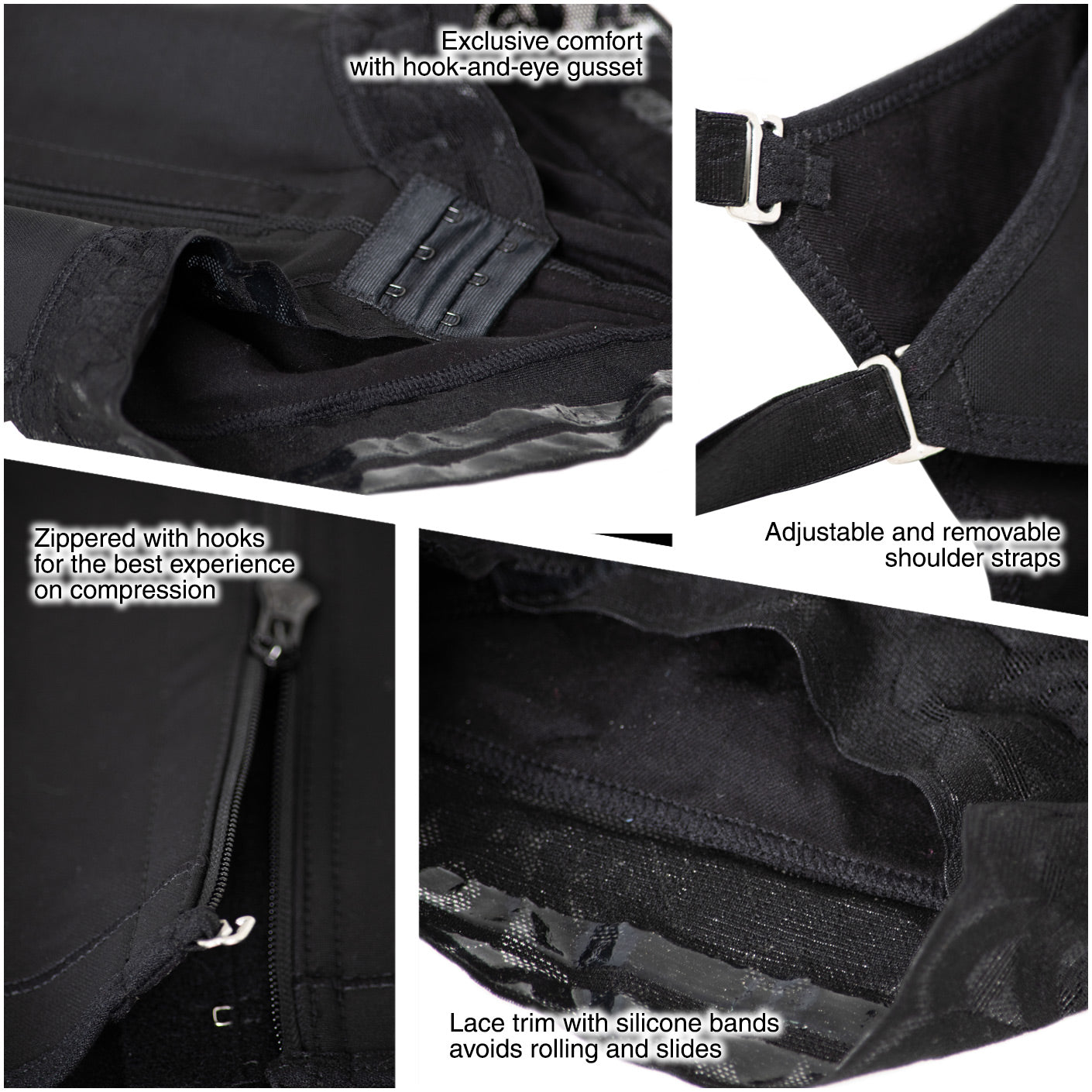 - 3-layer hook-and-eye gusset panel provides unique comfort.
